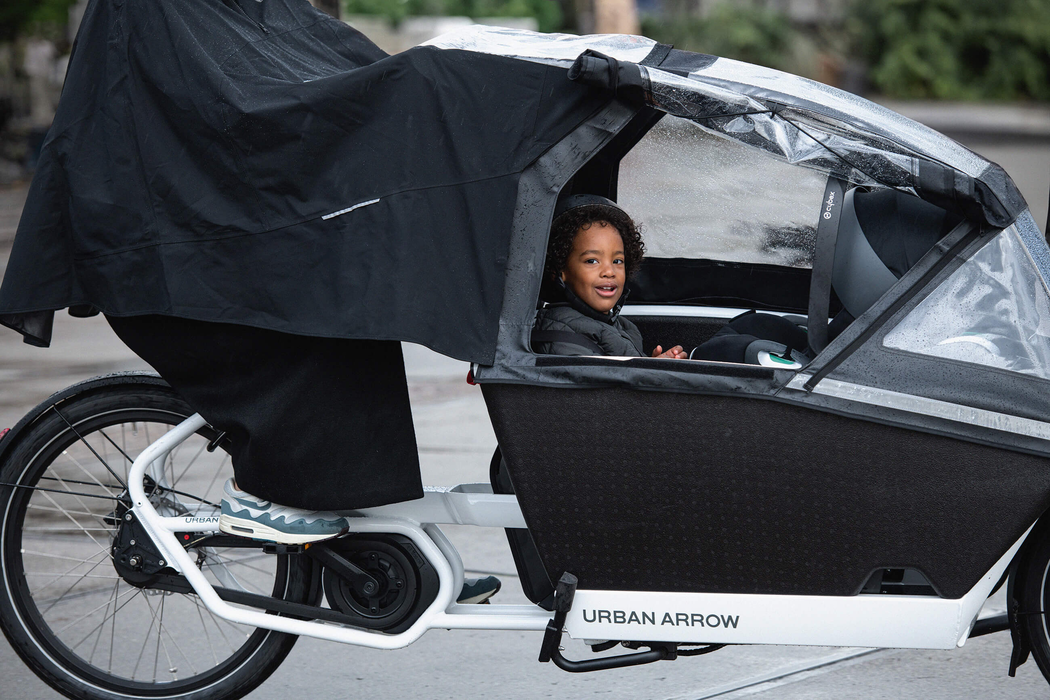 In Nederland zijn er zo van die weken waarin de weergoden er schijnbaar genoegen in scheppen om eindeloos grijze dagen aan elkaar te rijgen. Desondanks kiezen steeds meer mensen voor de Urban Arrow Family als primaire en duurzame manier van transport. Voor al die mensen die, met regen of zonneschijn, op de bakfiets alles doen is een Raincover accessoire die jou en je kinderen beschermt geen overbodige luxe. We hebben goed naar de feedback op onze vorige accessoire geluisterd en zijn aan de slag gegaan met de ontwikkeling van de Raincover PLUS. Dit is de nieuwe en verbeterde regenhuif van Urban Arrow en kan gebruikt worden i.c.m. de Maxi Cosi houders of het extra bankje.