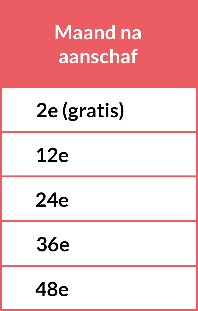 De ingangsdatum van de garantie is de factuurdatum van uw e-bike en loopt 5 jaar. Koopt u gedurende deze 5 jaar een nieuwe e-bike bij ons, dan wordt restitutie verleent bij aanschaf van een nieuw garantie pakket. Wilt u een tussen de 12 en 24 maanden na aankoop van de e-bike alsnog een garantie pakket afsluiten is dit mogelijk tegen de volgende prijzen: €219,- (e-bike <€3.500,-) of €239,- (e-bike >€3.500,-). - Is het garantie pakket ook mogelijk inclusief een onderhoudspakket?