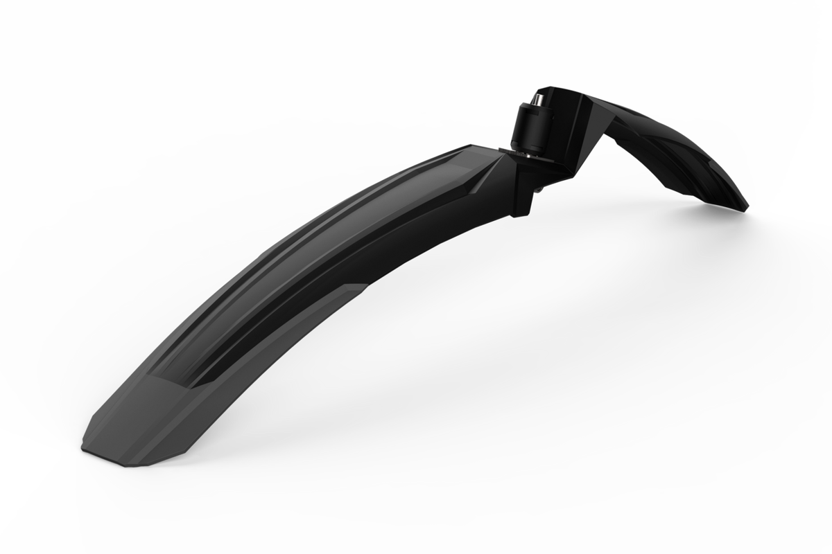Voorspatbord in enduro-style voor 29 inch mountainbikes, snelle montage zonder gereedschap met snelsluiting. Incl. adapter (voor vorkbuizen met een binnendiameter van 18 tot 35 mm), mat-met-glans afwerking.
