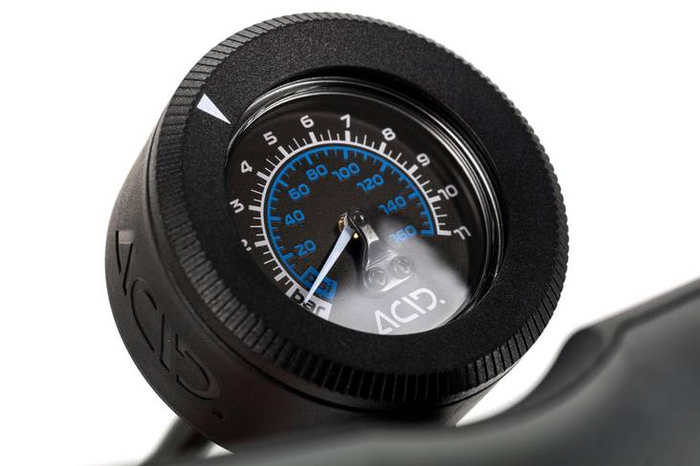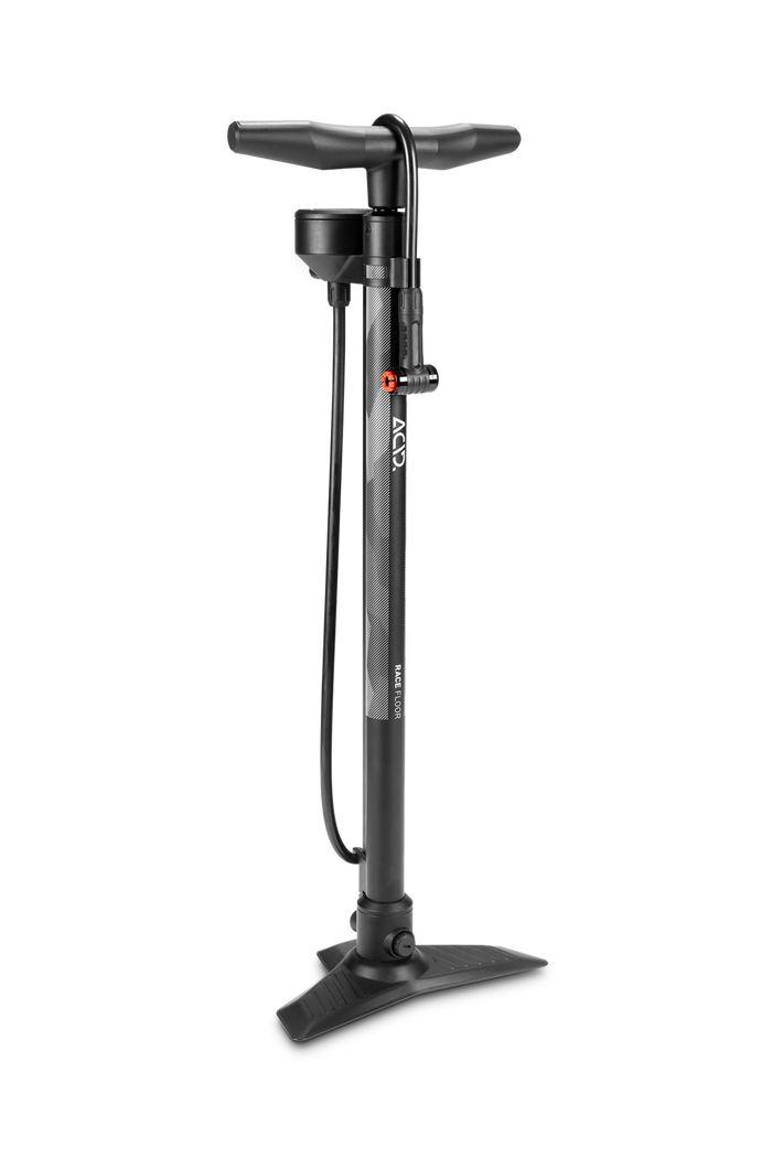 ACID Floor Pump RACE FLOOR voor Presta- en Schraderventielen, ergonomisch Natural Fit handvat, stabiele voet en pomphuis van staal, grote manometer, extra lange luchtslang, 11 bar max.