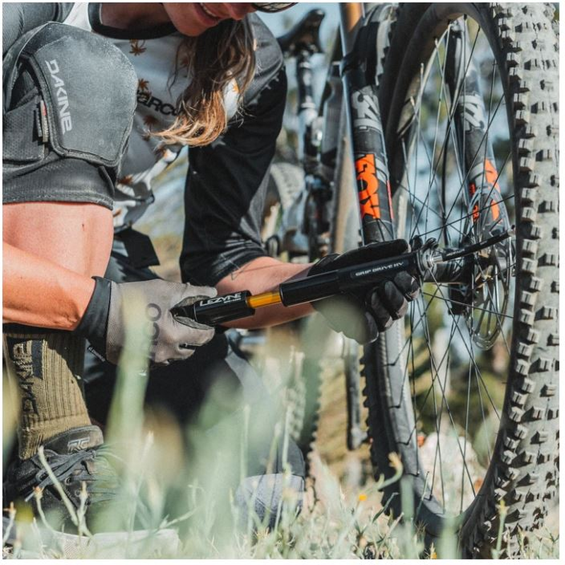 Compacte en superefficiënte hogevolume-fietshandpomp. Met een pompvermogen tot 90 PSI (6,2 BAR) is de Grip Drive HV uitstekend geschikt voor alle hogedrukfietsbanden