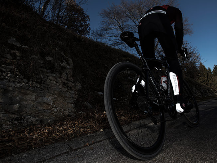 De Castelli Nanoflex pro bibtight is lekker warm en waterdicht.