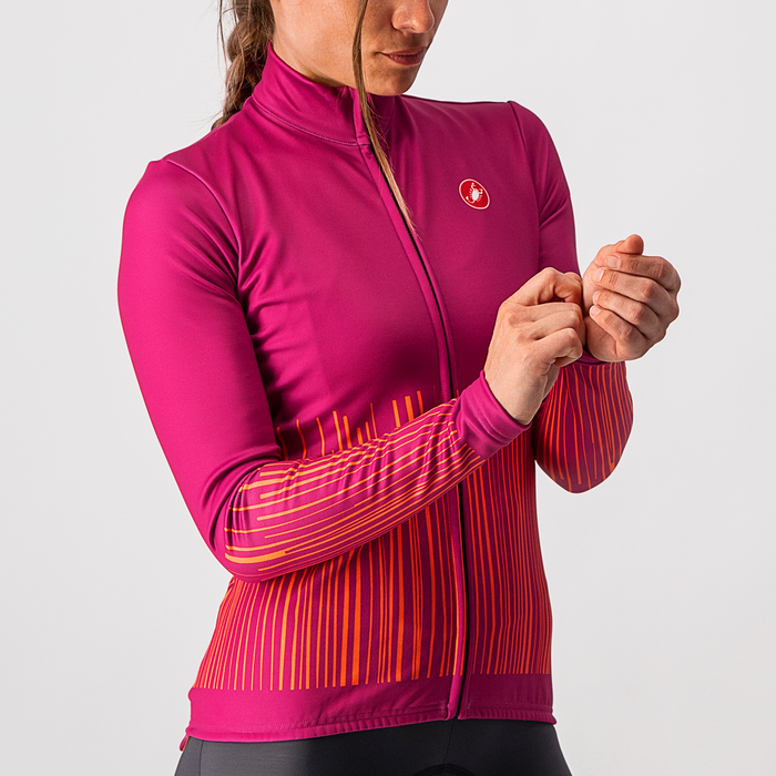 De Castelli Sorpresa jersey is extra warm, bedrukt shirt voor tochten in de herfst, met een vleugje kleur en een flatterende grafische look.