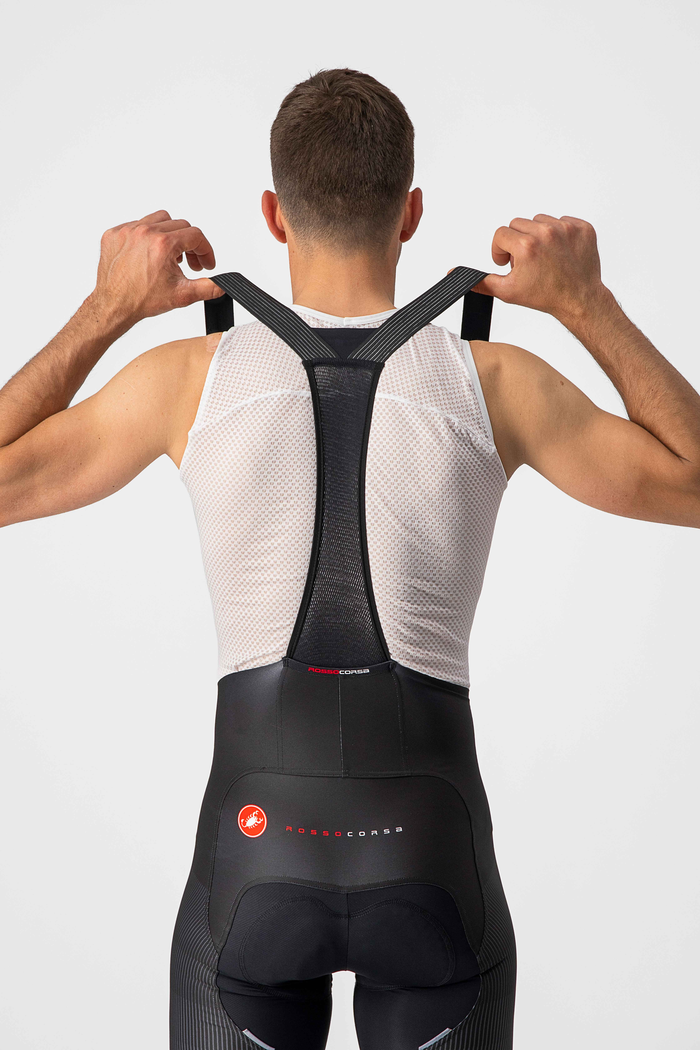 De Castelli Free Aero RC Pro Bibshort is de perfecte mix van comfort en snelheid. Gemaakt om te racen op het hoogste niveau en uitermate comfortabel voor elke fietstocht en elke renner.