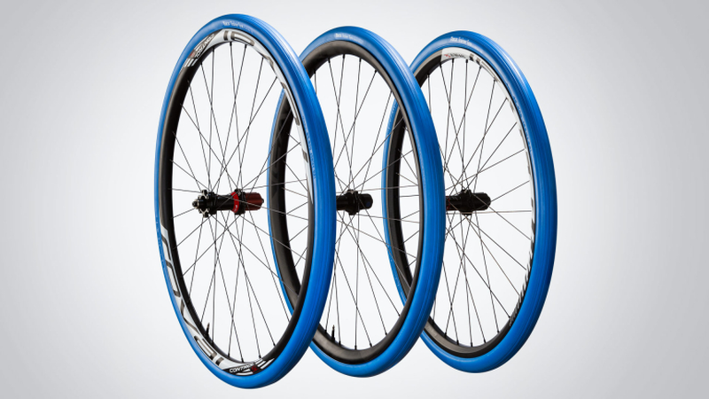 De blauwe trainerbanden van Tacx zijn speciaal ontwikkeld voor het rijden op de indoortrainer.