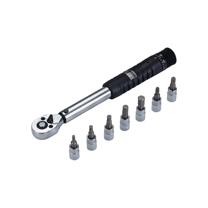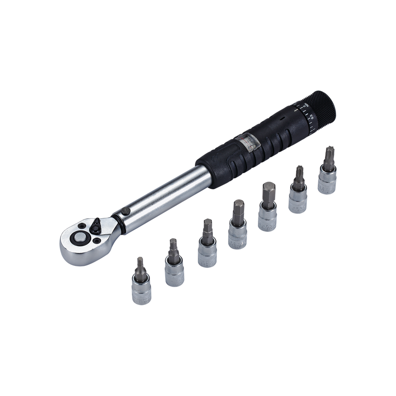 De TorqueSet is de perfecte tool om je werkplaats naar een hoger plan te tillen. De TorqueSet bevat alle belangrijke bits om te werken aan je fiets. Het speciale klik mechanisme geeft je een precieze afstelling van het moment en voorkomt dat je de schroeven te vast of te los aandraait. De perfecte tool om je fiets in topconditie te houden!