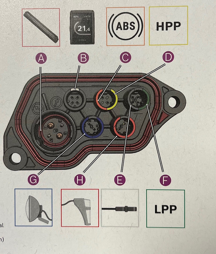Tracefy Connector voor het nieuwe Bosch Smart System. Dit is de nieuwste kabel die zowel in de Low Power Port (LPP) en High Power Port (HPP) kan. In 99% van de gevallen is één van deze motor poorten vrij. U kunt dit van te voren controleren door de motorkap er even af te schroeven. Zie bovenstaande afbeelding. Deze groene connector kabel kan dus ook op de gele High Power Port worden aangesloten.