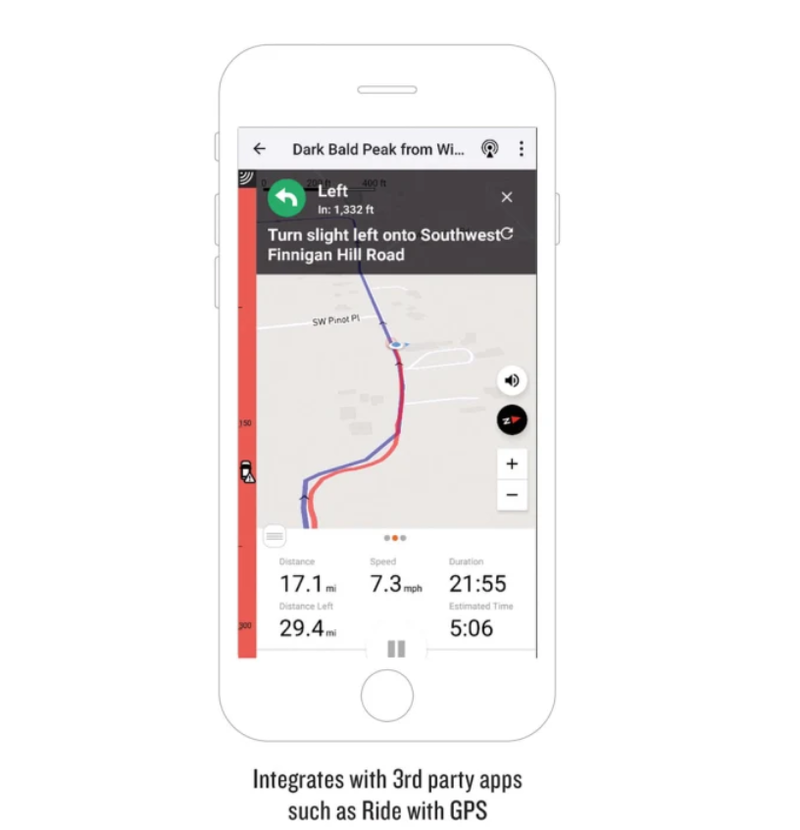 Als je de Varia™ RTL515 aan je smartphone koppelt, kun je deze radar integreren met populaire fietsapps zoals Ride with GPS. De waarschuwingsmeldingen van de radar worden automatisch weergegeven op je navigatiekaarten. Zo hoef je niet constant van scherm te wisselen en blijven je ogen op de weg gericht.