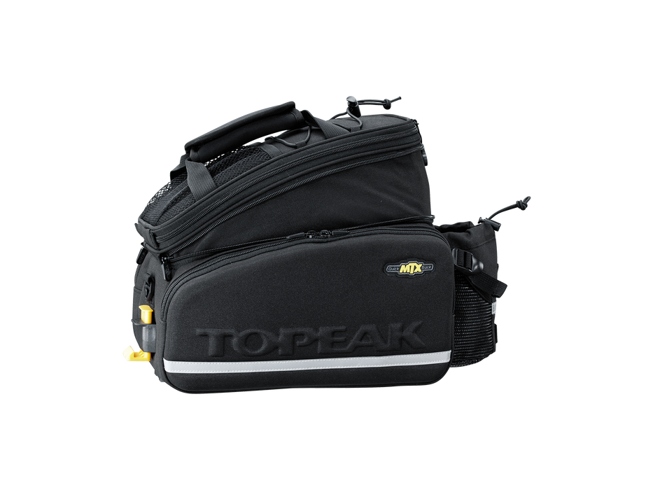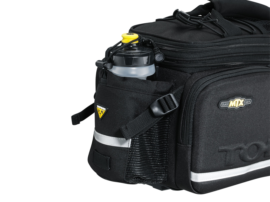 De Topeak MTX TrunkBag DX heeft een verdeeld hoofdvak, twee vakken met ritssluiting aan de zijkant en aan de achterzijde een bidon houder.  Compatibel met alle MTX QuickTrack rekken.