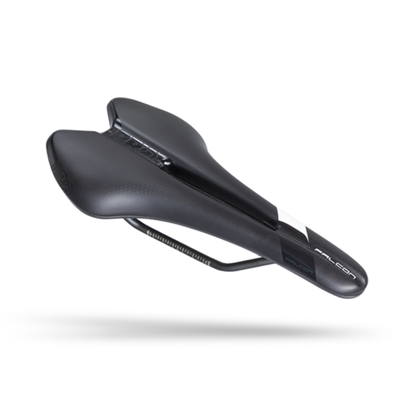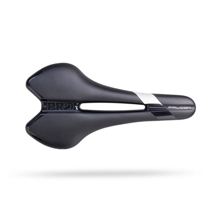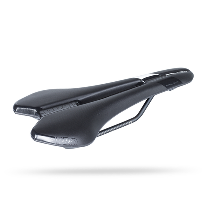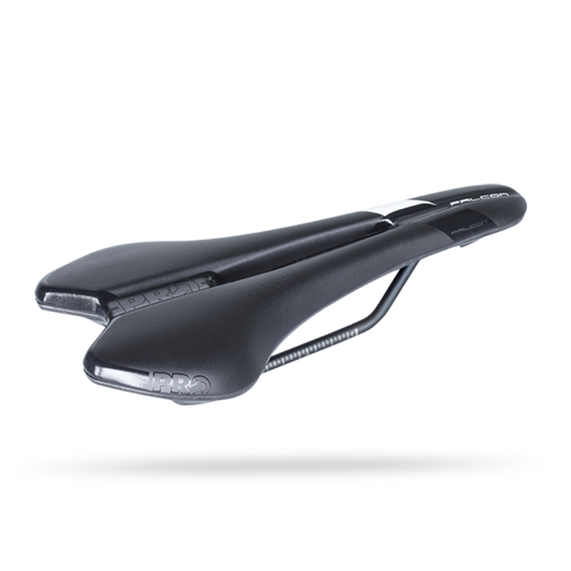 Het PRO Falcon Dameszadel, dat ontworpen is voor een sportievere fietservaring, heeft een platte vorm voor de beste afstemming op fietsers met een flexibele lichaamsgeometrie. De variabele dichtheid van de lichte EVA-voering op specifieke plaatsen in het zadel is gebaseerd op lichaamsmetingstechnologie, om in te spelen op de behoeften van vrouwen. De zadels hebben ook een anatomische uitsparing om de druk te verlichten, een stijve en lichte basis van polymeer met carbonversterking, en roestvrijstalen rails. Het 142 millimeter brede model weegt 218 gram.